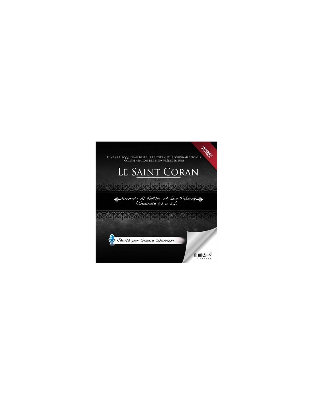 CD audio de Coran: Sourate Al Fatiha et Juz Tabarak, recite par Saoud Shuraim.
